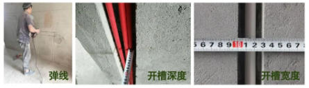 16管开槽深度不少于3.1cm,20管开槽深度不少于3.5cm,保证水泥砂浆厚度不低于1.5cm,确保开槽处水泥粉层不会开裂。