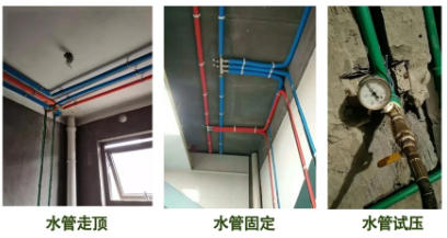 所有冷热水管打压8-10公斤1小时,保证不掉压确保水管焊接处无泄漏。