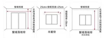 落地帘一般离地高度为3-5cm,半截帘需窗台下延伸15-20cm,为防止漏光一般需拖台1cm。